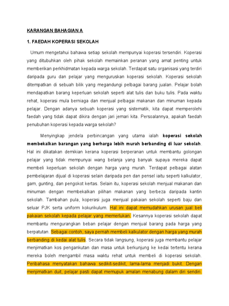 Contoh Karangan SPM Faedah Koperasi Sekolah. KARANGAN SPM - KOPERASI SEKOLAH. Isi Karangan Kebaikan Faedah Koperasi Sekolah Pendahuluan Karangan Koperasi Sekolah Ialah Studocu.